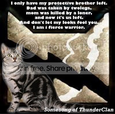 Sorry, I wouldve replied earlier, but I wasn't checking.... but THX SOOOOO MUCH! Miserypaw looks AWESOMENESSNESS! it just the way i pictured it!