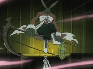 ic -Allen:"o?" it said "an exorcist?" the demon thing said looking a Allen "this sould be fun!" allen formed a sword out of his left(?) arm "im going to bring peace to your soul!" he said point the sword at it