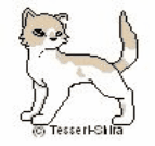 Colors:A grey she cat with darker specks on her pelt ice blue eyes.