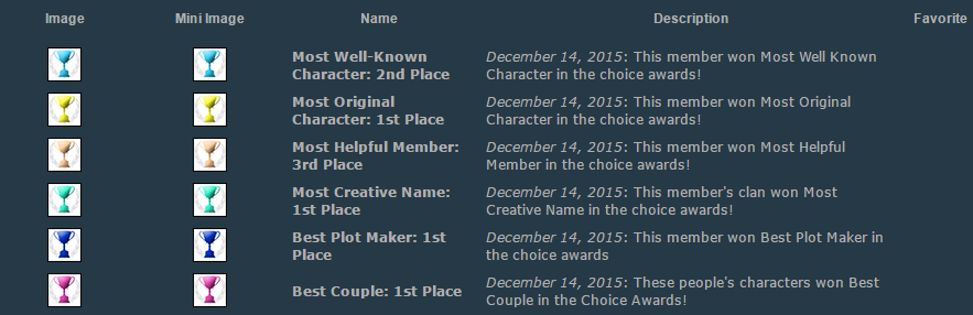 The first kind of accolades you can earn is a staff-run event badges, which are usually stickied in specific boards with a link to this thread. Make sure that you read the first post so that you meet the posting requirements for that thread before requesting it! If the event is retired you can no longer earn the badge.