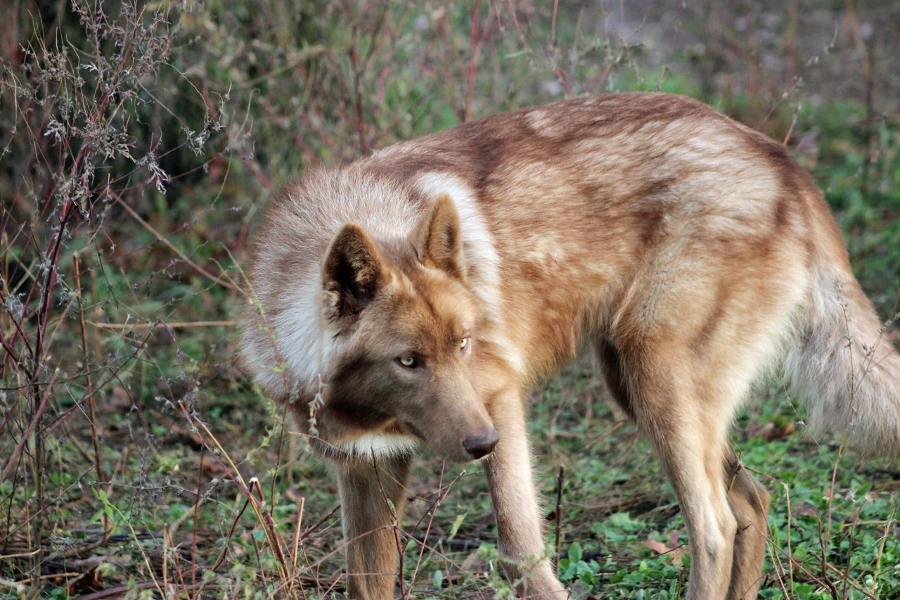 APPEARANCE. a scruffy dark-furred wolf that is a bit larger than your traditional wolf. Layered in a thick coat that's mainly black with hints of brown along the face, spine, legs and tail. He has powerful long legs, much like his brother, and has surprisingly sharp claws. His eyes are several shades darker than when in human form, taking on a pale gold or cream color instead of their general brown.