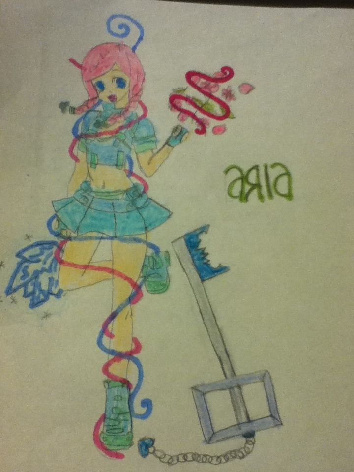 keyblade looks-Keyblade looks on pic, called the Frost Key. Also has another keyblade; it is pink with petals on it and a rose on the chain. called the Hope Key.