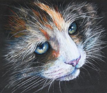 cream and white she-cat. hazel eyes.