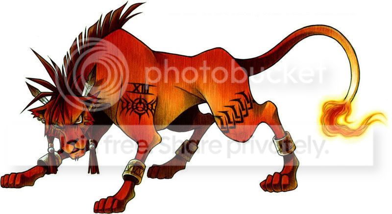 Appearance: Thanos' over coat is a deep blood red, while his undercoat is a lighter orange-ish yellow. Almost like a horse, fur stands on end from the top of his head down half his back. A few strands of the hair is longer than the rest and frames his neck, it is tied with beads at the bottom. His right eye has a scar over it and he is half blind, it was damaged in the fight with his father. His reaming eye is a fiery gold. The tip of his tail is permanently lit on fire, and he can light his whole body on fire if he likes. The royal's body build is relatively small. He is slim but muscular.