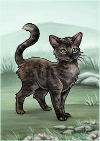 [font=andale mono] Well, being panji is all high and mighty on her high horse; I think a tom might take her down a peg or two. In this romance plot panji meets a tom with the same perspective on life as she has, although there's one difference, the tom has a bad reputation, and hangs out with the total opposite crowd that panji does. The two would always argue they’re when on a patrol together, and their frustration toward each other increases. However, they both feel an attraction for one another, but while they are on opposite ends of the social spectrum they can’t be together. Both the cats don't want their friends to know that they like each other in some twisted way. Soon their attraction becomes too much and panji and the tom sneak out of camp and spend the night together, and, what do you know, panji falls pregnant. she tries to keep the litter a secret, but it's noticeable before long. Right about that time the tom was about to ask panji to be his mate, but when he notices she's pregnant he assumes the litter is a different toms litter, and gets mad a panji. Well, when panji tries to explain to the tom that the kits are his, he refuses to believe her. However, when one of the kits in their litter turns out to look identical to their father, he can't ignore the differences, and they become mates. Happily ever after :3