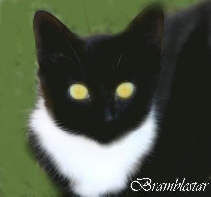 History: Same as larkflight but: When ebonyfire became a warrior he was in a fight with his sister. He ran from camp and both of his eyes where snagged by brambles. He became forever blind not being able to be healed.