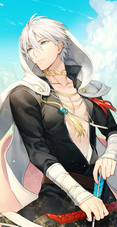 Appearance: Rhiskal is a tall male with long arms and legs. His fingers are also long, skinny, and a little rough. His body resembles that of a swimmer, being skinny, but muscular. His hair is a stark white, and his eyes are a vacant gray. He often wears clothes that seem slightly medieval, and is always carrying his bow and arrows on his back.