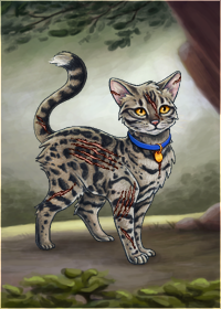 Appearance: Cinnamon tabby she-cat with amber eyes, a toothed collar, and several scars.