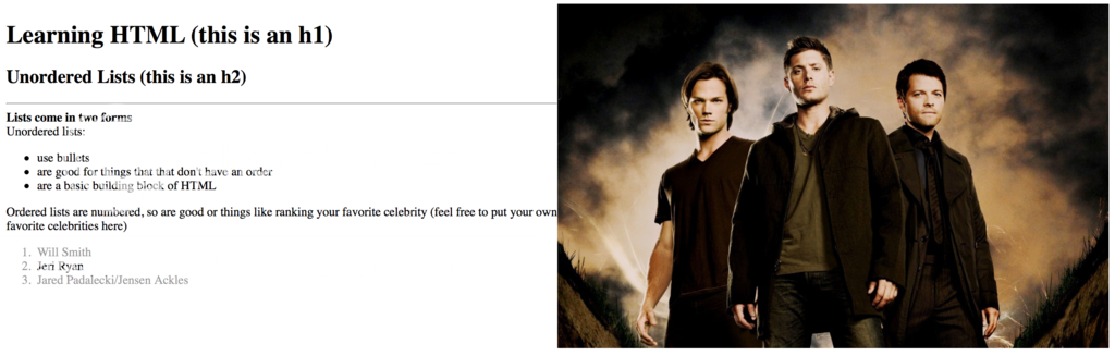 For our next assignment (which will simply build off of our previous assignment) we're going to modify our web page to show a random picture from a list of images. When our page loads, instead of loading the same image every time, it'll choose a random image from a list we give it, and load that.